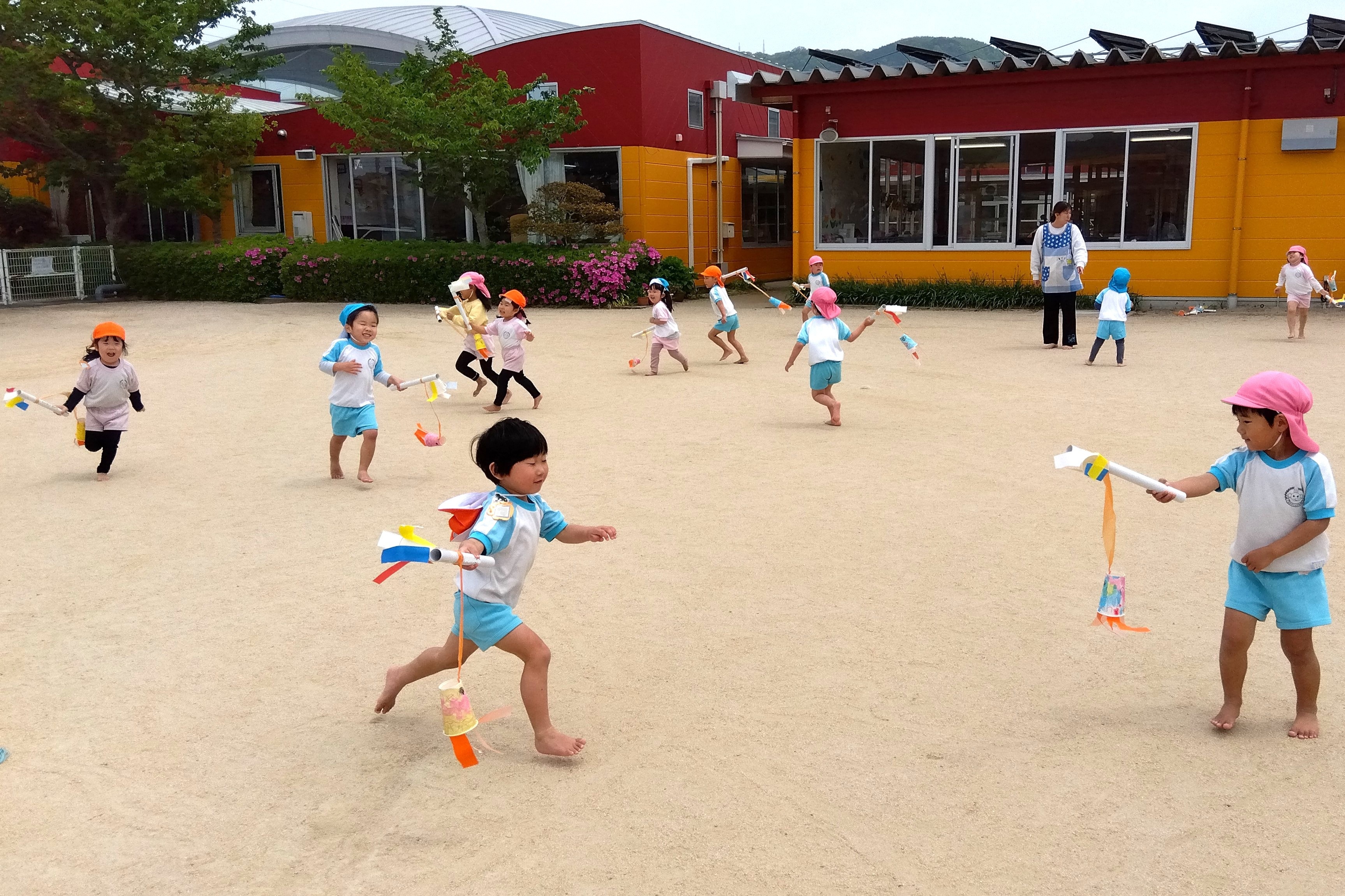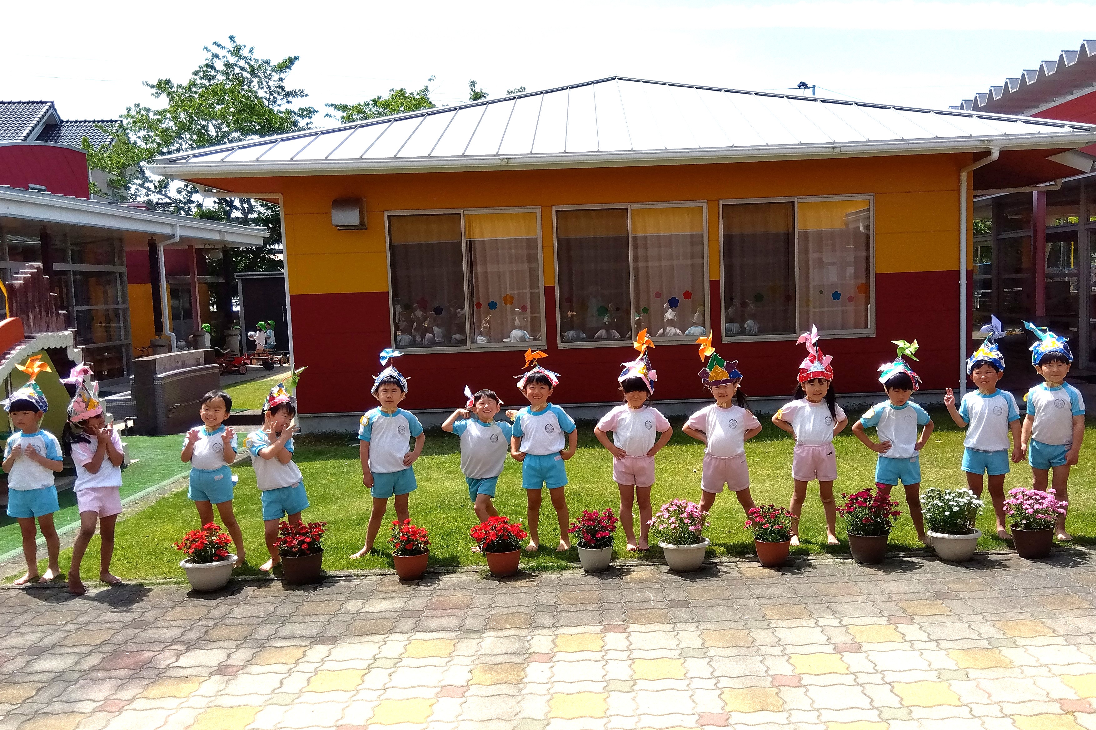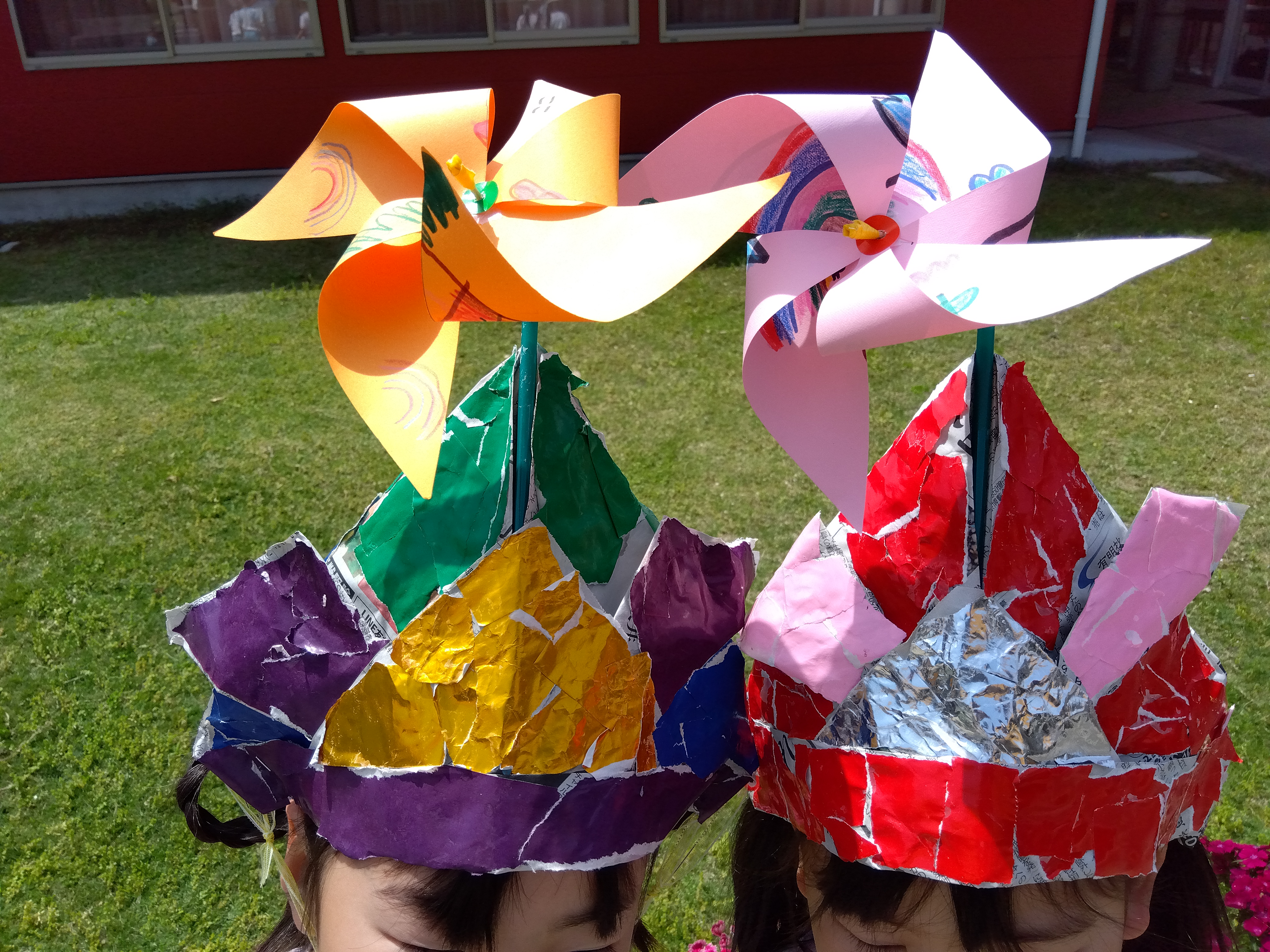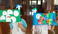 それぞれの学年で、可愛いこいのぼりを作りました!きらきらランド(満3歳児)は、初めての制作!指先を使って、シール貼り!たくさんのシールを“こいのぼりCar”に貼って、ぬいぐるみを乗せて…Let’s go‼年少さんは、手持ちのこいのぼり!4原色(赤 青 黄 緑)が意識できるように、4色で手作りしました!室内のこいのぼりと一緒に、ハイチーズ✨年中さんは“紙コップ”を利用しての“とべとべこいのぼり!”吹き流しも上手に作りました!年長さんは“兜”と“風車”の合体バージョン‼運動場を走り回って、風車が回るかのチェック!その後、格好良いポーズで決めてくれました!めぇめぇひろばのお友達!(未就園児園開放日)花紙やシールを使って、可愛いこいのぼりの完成です!それぞれ素敵な作品が出来上がりました!