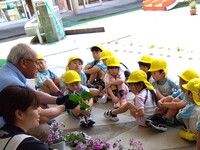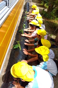 食育・自然とのかかわりを「ねらい」として、年長児がサツマイモの苗を植えました。