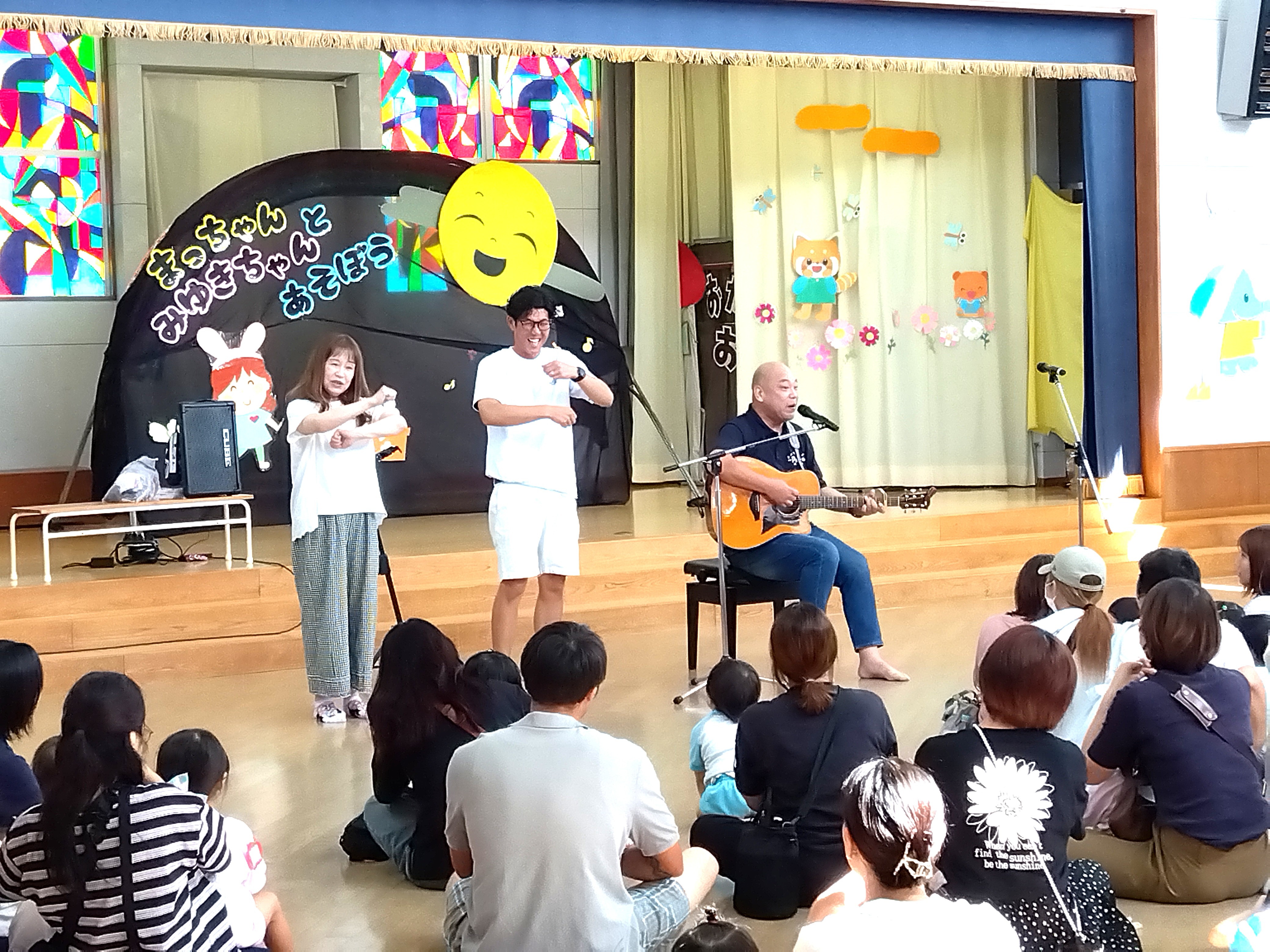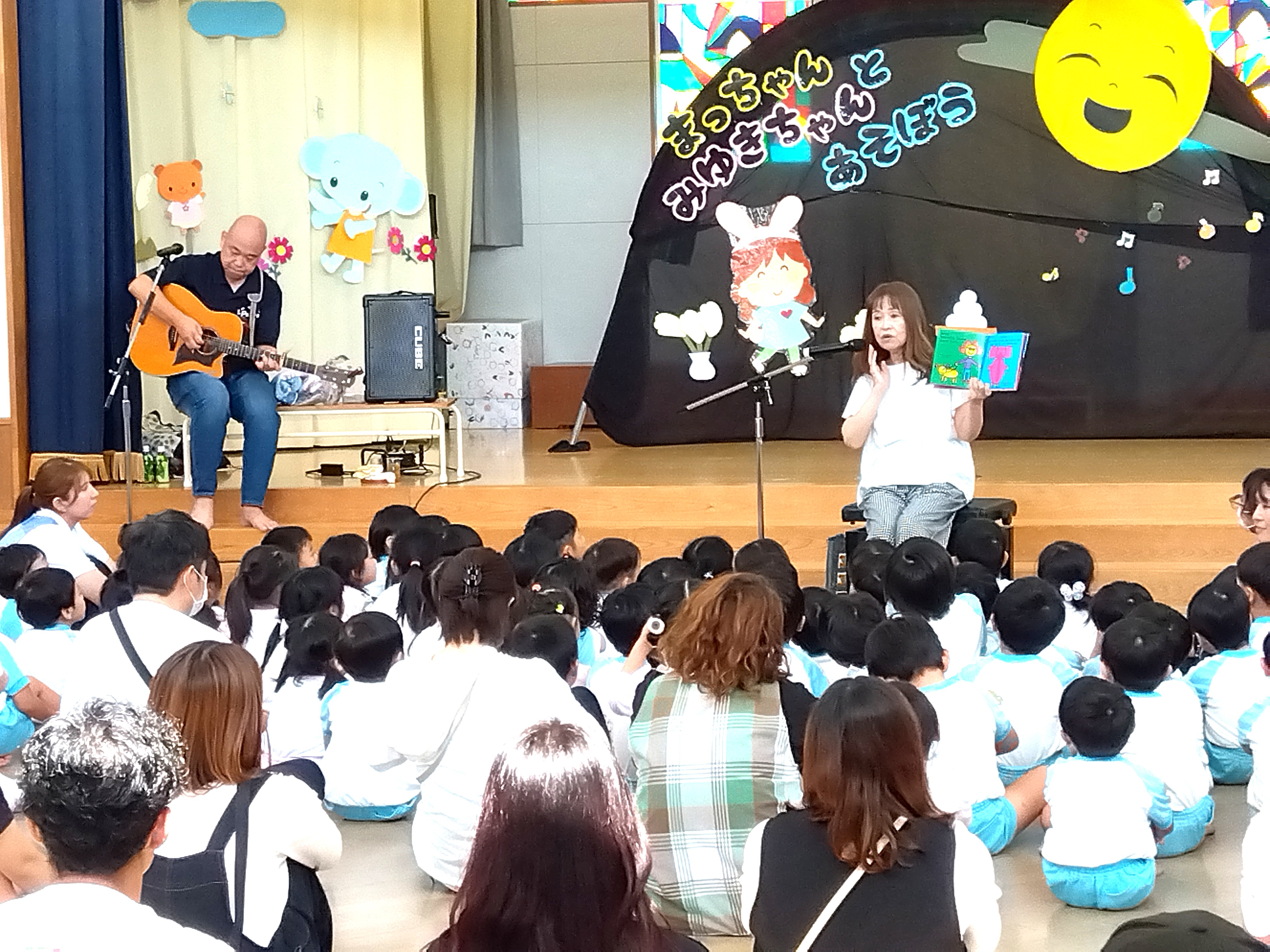 【まっちゃんと遊ぼう♪】“まっちゃん”こと町田浩志さんとみゆきちゃんをお迎えしてのスペシャルイベント。今年もエルアン幼稚園に来てくださいました!!子ども達も保護者さんも、みんなで一緒に歌って笑って大盛り上がり。ふれあい遊びやみゆきちゃんの絵本の読み聞かせなど内容盛り沢山で楽しみました。まっちゃんの素敵な歌声と、みゆきちゃんの優しい声に癒されたひと時となりました。