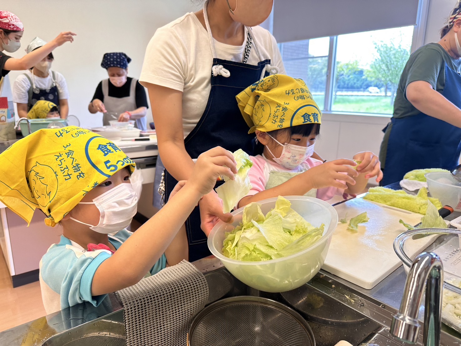 洗った野菜は、お家の人と一緒に切っていきます!