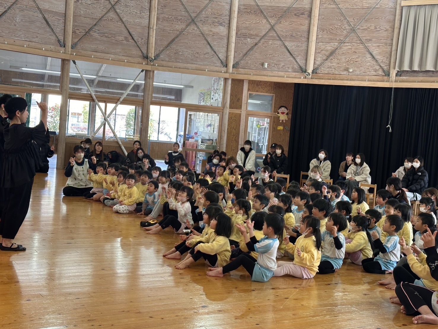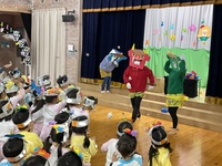 【豆まき会】 今年は、2月2日が節分でした!相知エルアンこども園には、1日遅れで鬼たちが遊びに来ちゃいました!