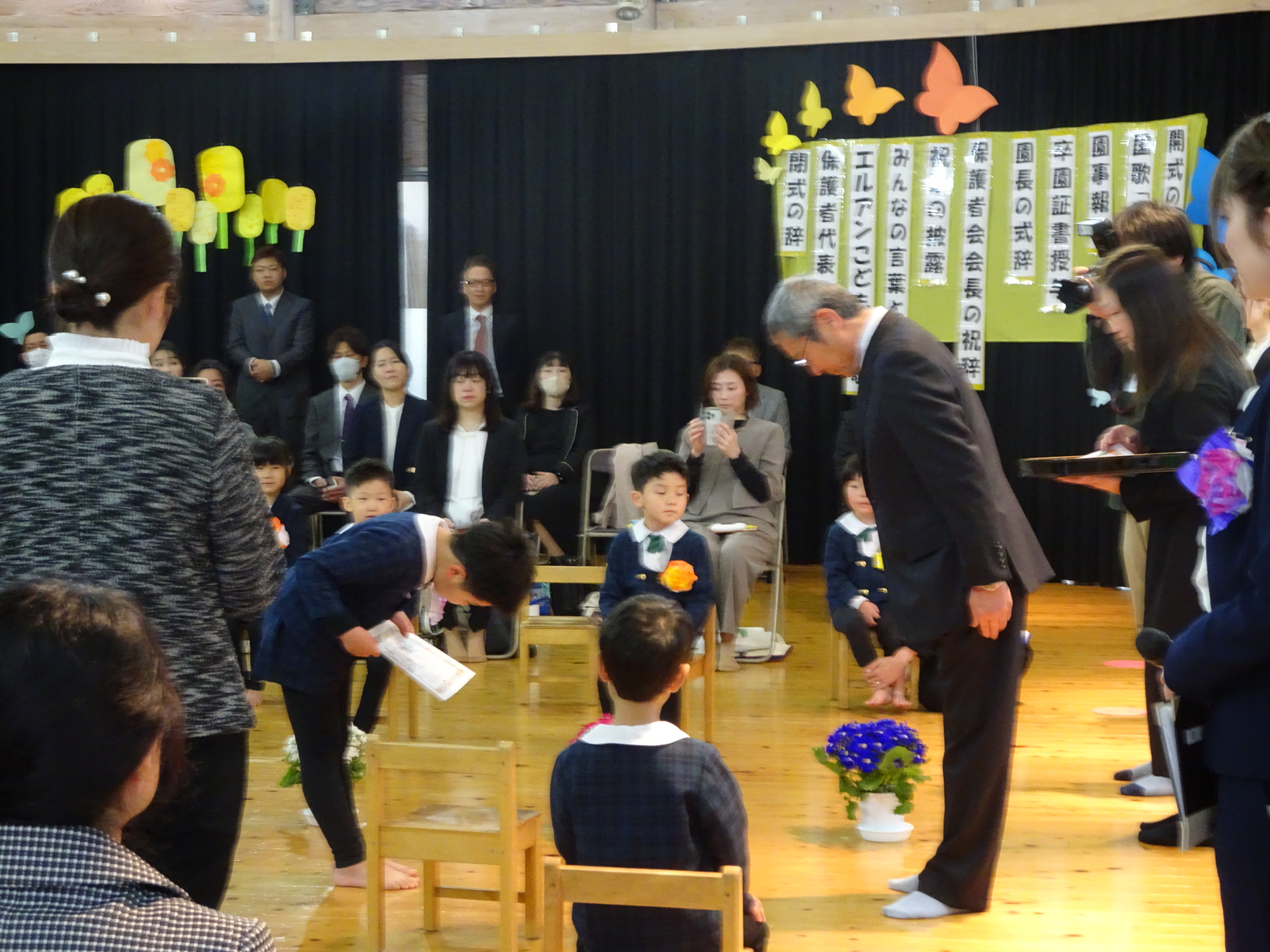 一人ひとりに、園長先生から卒園証書を受け取りました。