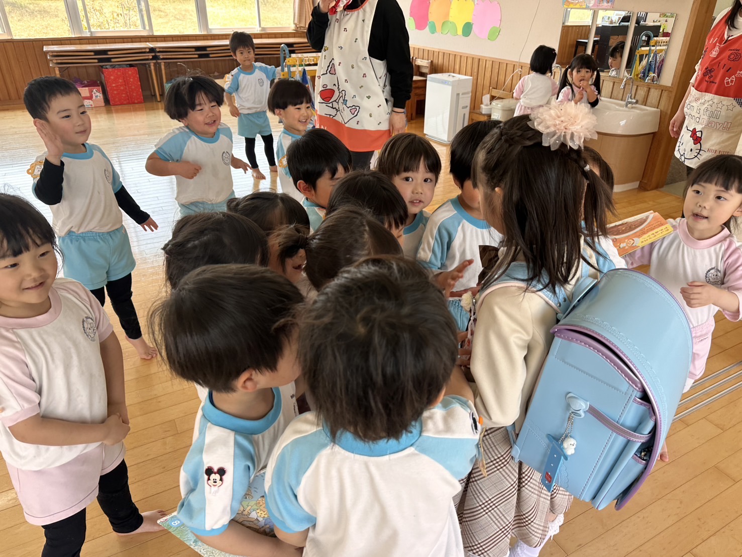 先月卒園を迎えた子ども達が、入学式を迎えランドセル姿を見せにきてくれました。