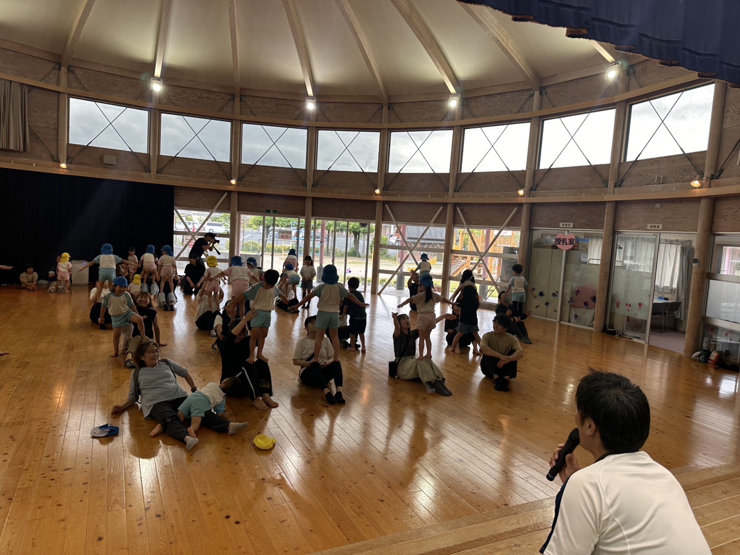 いむらスポーツクラブの西川先生が親子で触れ合いながら、身体を動かす楽しさをいっぱい教えてくれました。