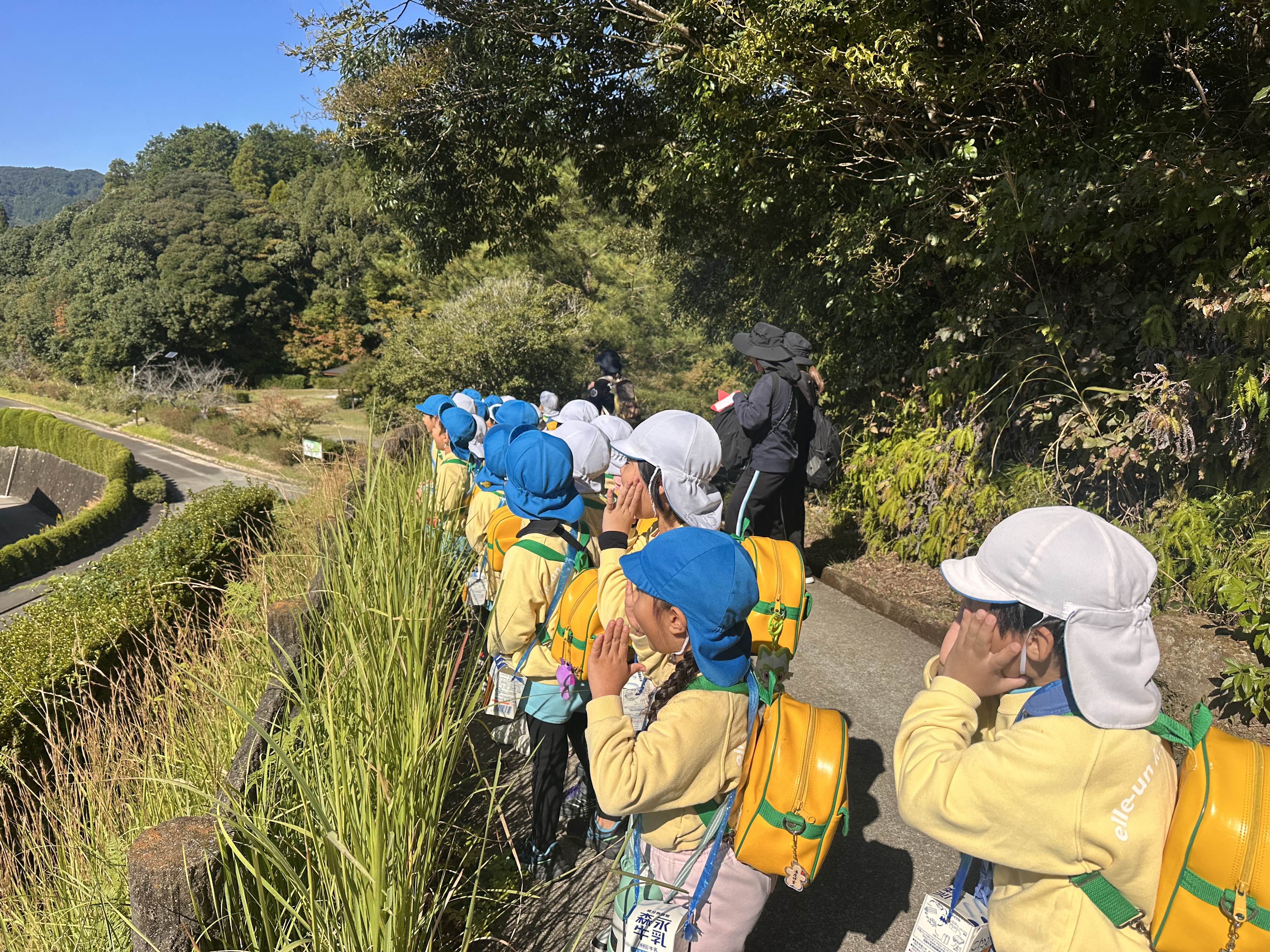 まずは、年長さんが先に到着し、こんな上り坂を登っています。