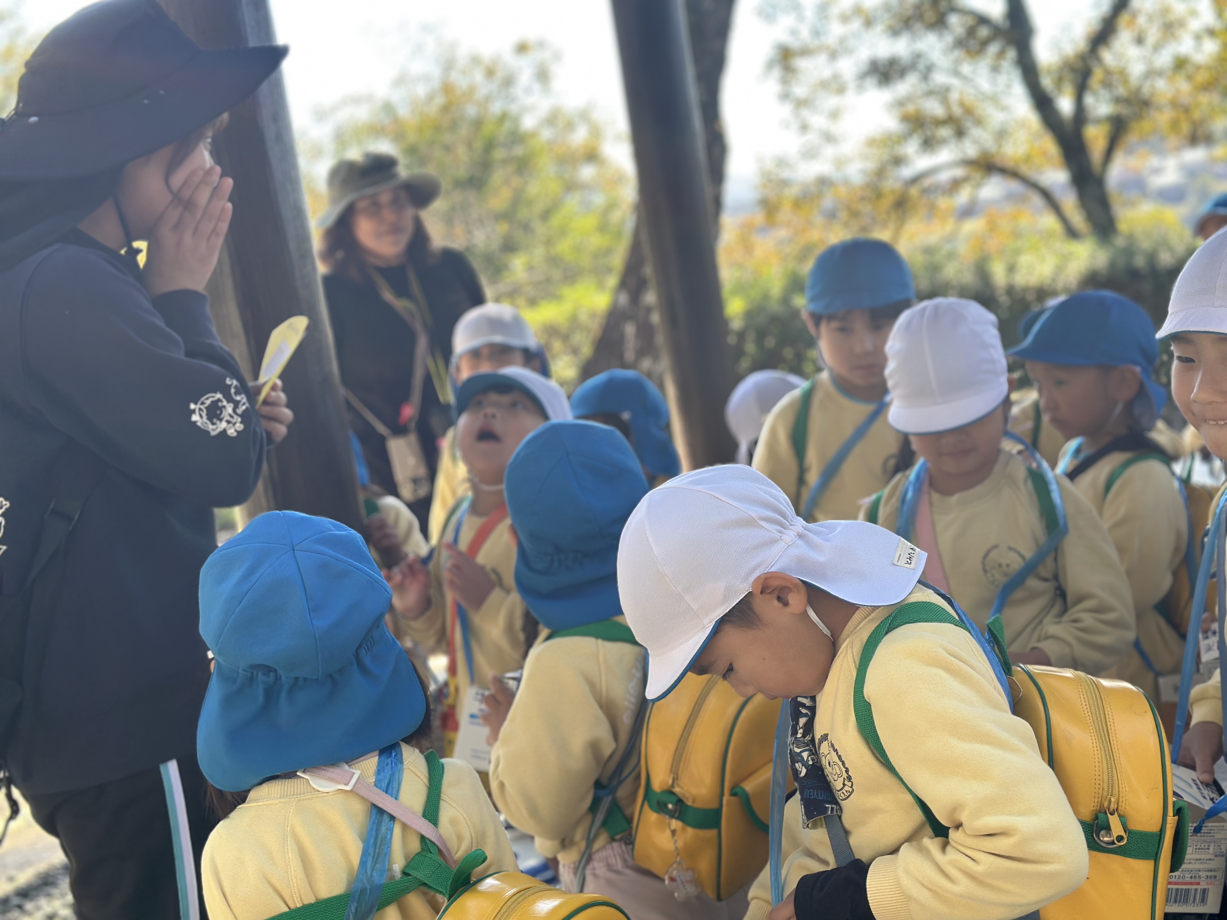 秋をたくさん発見しよう!と、どんぐりバックを持って来ていた年中・年長さん。