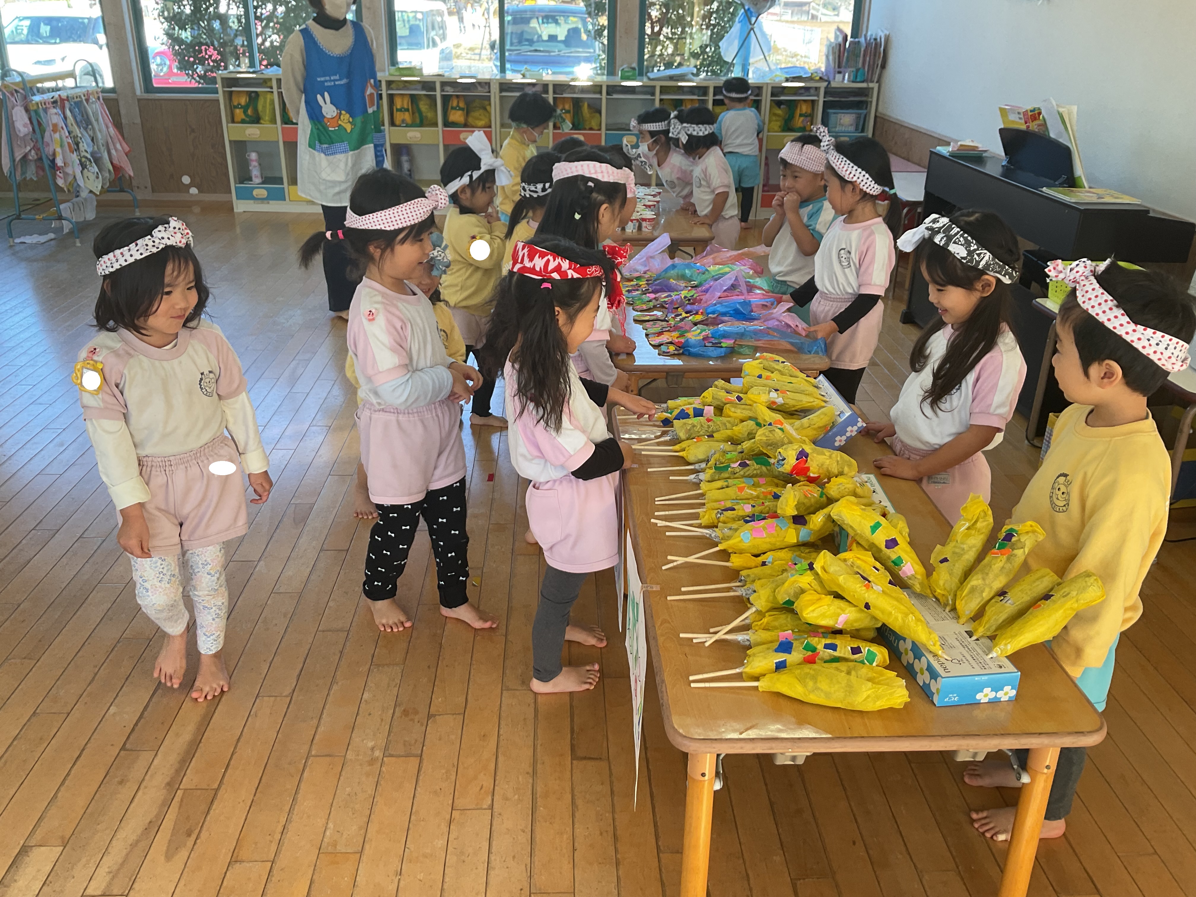 年中さんのチョコフォンデュ屋さん等があり、とても可愛くみんなチョコをたっぷり付けて買う方も楽しんでいました。