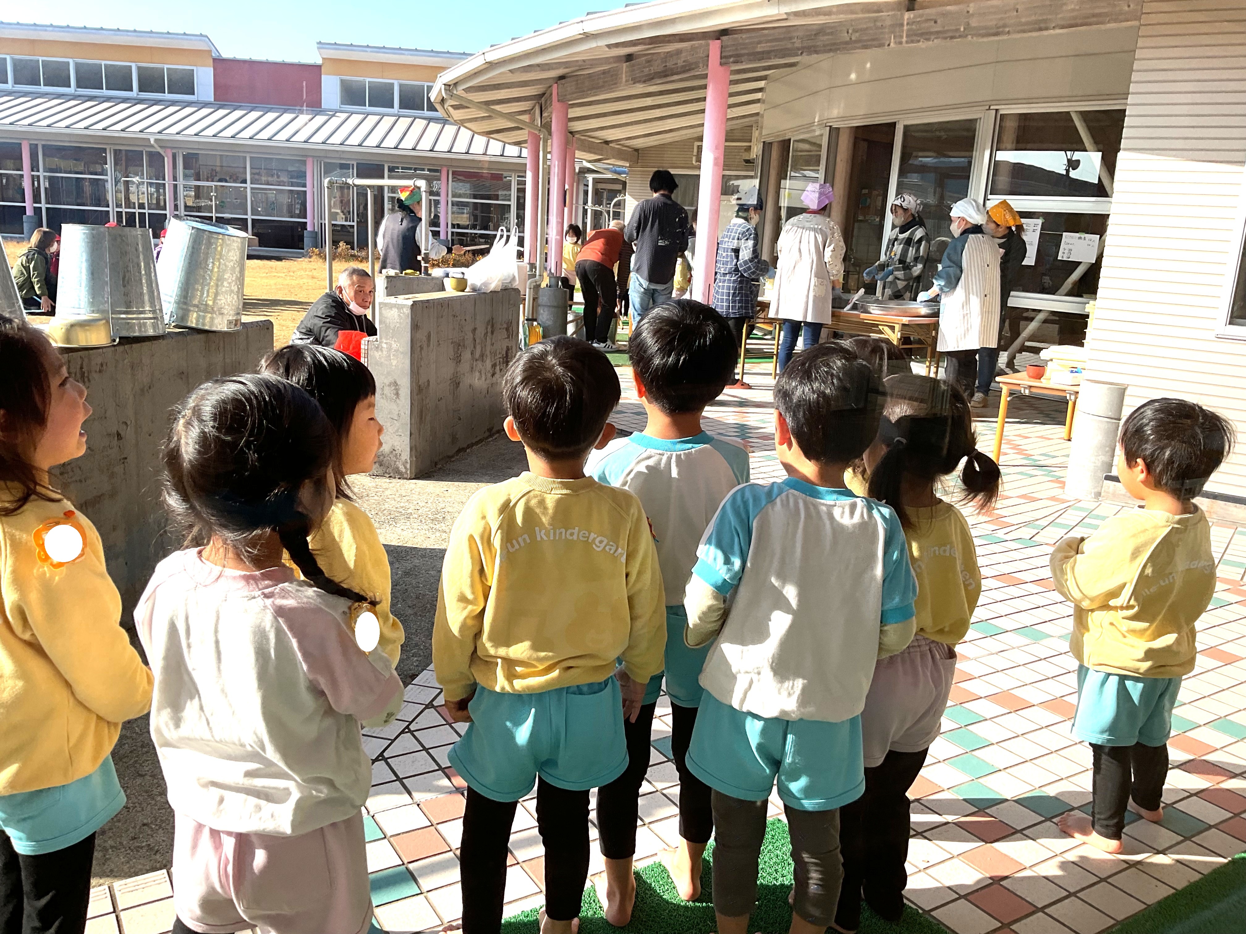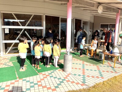 エルアン幼稚園の年長さんももちつき会に招待しきてくれました。