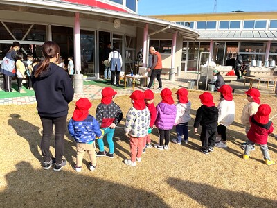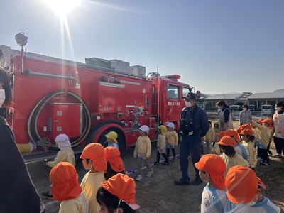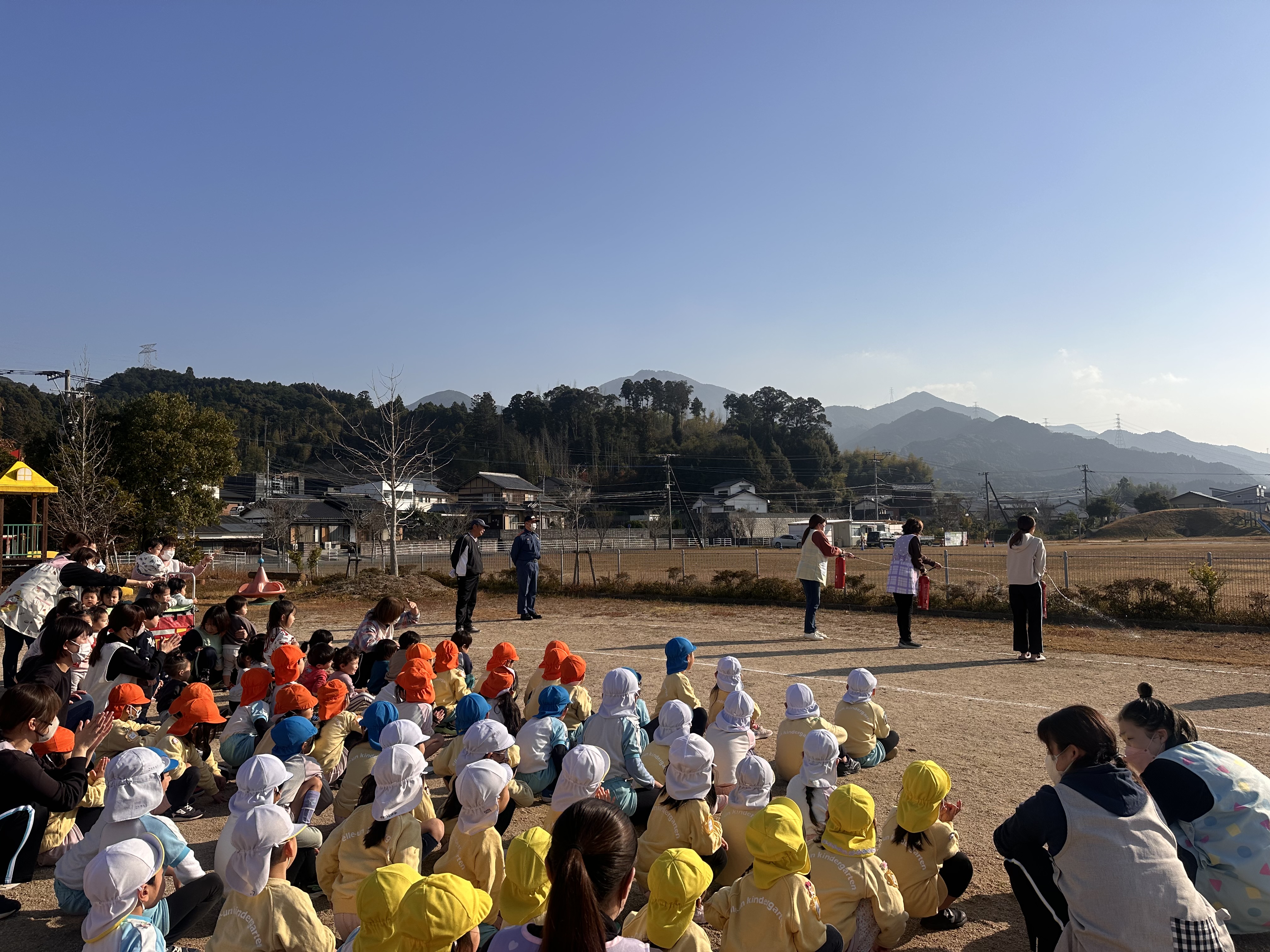 【消防署立ち合い訓練】 南部分署の消防士さん達が、相知エルアンこども園の避難訓練の様子を見にきてくれました。