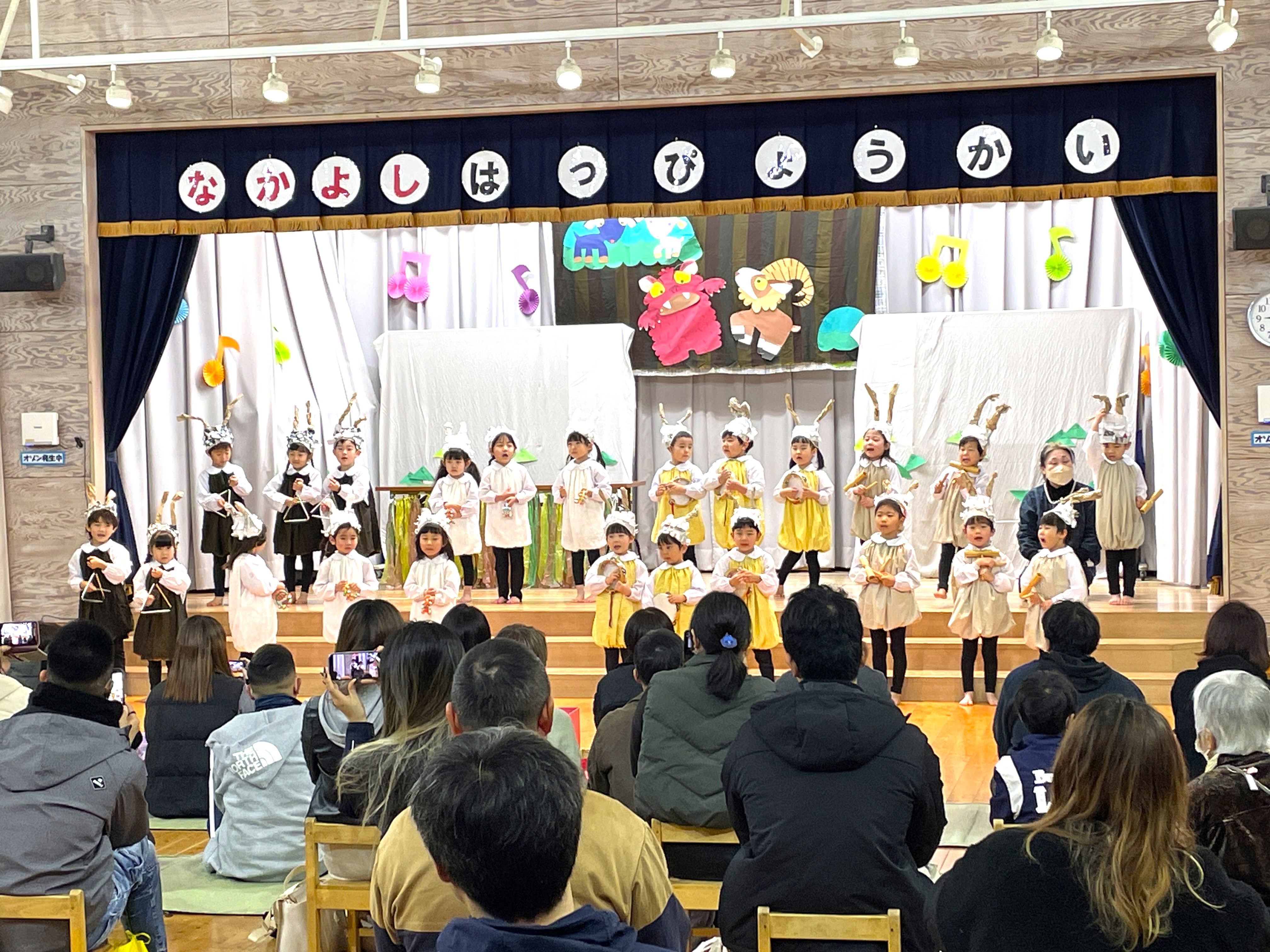 【年中:なのはな組】 ヤギになって登場した年中組の子どもたちは、楽器遊びからのスタートでした!